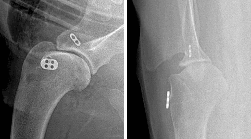 Reconstruction techniques are challenging and inconsistent results are seen, so we try to avoid this procedure when possible. Approximately 60% of dogs will see a return to normal activity with good functional outcome, 25% have an acceptable outcome and the remainder will continue to have disability. It is a very long recovery and rehabilitation is extremely important to ensure appropriate healing. The repair will be protected with bandages and supportive braces which need to be maintained vigilantly. Exercise restrictions are extremely important during the healing process to limit risk of failure.